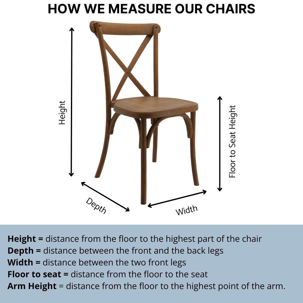 Features Material Resin (These are NOT Timber, Timber Look Only) Finish Timber look Indoor/Outdoor Indoor or Outdoor use Needs Assembly No Dimensions D 470mm x W 400mm x H 870mm Floor to seat: 460mm Weight: 4.9kg Stackable Yes Quality Commercial grade Warranty 3 year warranty against faults arising from defective workmanship Other Features Static Seat Load…