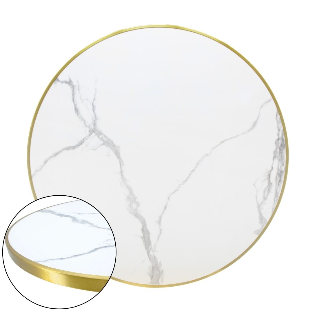 Features Material Porcelain Table Top wiht 201 Stainless Steel Gold Trim Finish Verona Marble Porcelain **Please note Print may vary Dimensions Available in: 600mm Diameter (9.3kg) 700mm Diameter (12kg) 800mm Diameter (16.5kg) Thickness: 30mm Predrilled holes No Predrilled holes Indoor or Outdoor Indoor Only Quality Commercial grade Warranty 12 months Other Features Table top…