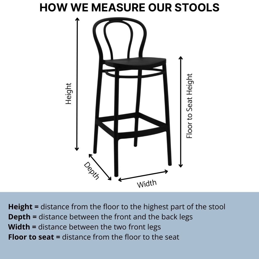 Please ensure you have measured your bench or table before making your purchase. As a guide, anything between 90cm to 100cm would be most suited to a 66cm stool. Benches or tables that are above 100cm are better suited to a 76cm stool.
