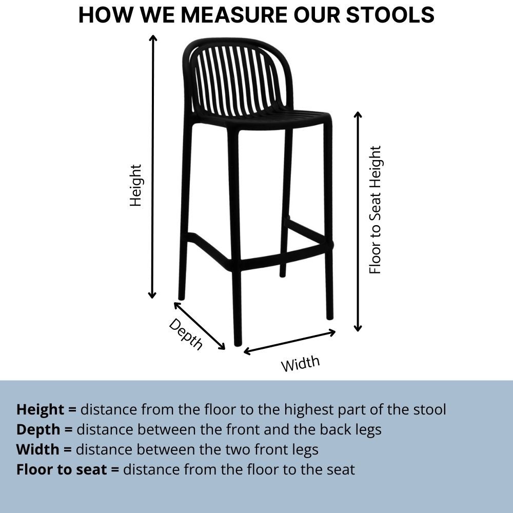 Features Material Polypropylene single mould injection Finish N/A Indoor/Outdoor Indoor and Outdoor use Needs Assembly No Dimensions D 470mm x W 410mm x H 1040mm Floor to seat: 750mm Weight: 5.1kg Stackable Yes Quality Commercial grade Warranty 3-year warranty against faults arising from defective workmanship. Other Features Please be aware that while utmost care is…