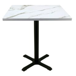 Measuring 600x800mm with a 25mm thickness, this elegant tabletop features a luxurious Mercutio Marble Melamine Veneer over a sturdy partial board core, complemented by a sleek White PVC edge. Weighing 8kg, it comes with predrilled holes compatible with Maxwell, Circular, and Ch.
